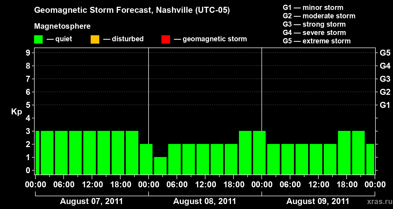 Geomagnetic storm forecast in Nashville for Aug 07, 2011