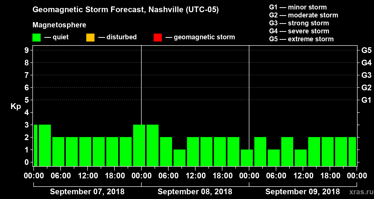 Geomagnetic storm forecast in Nashville for Sep 07, 2018