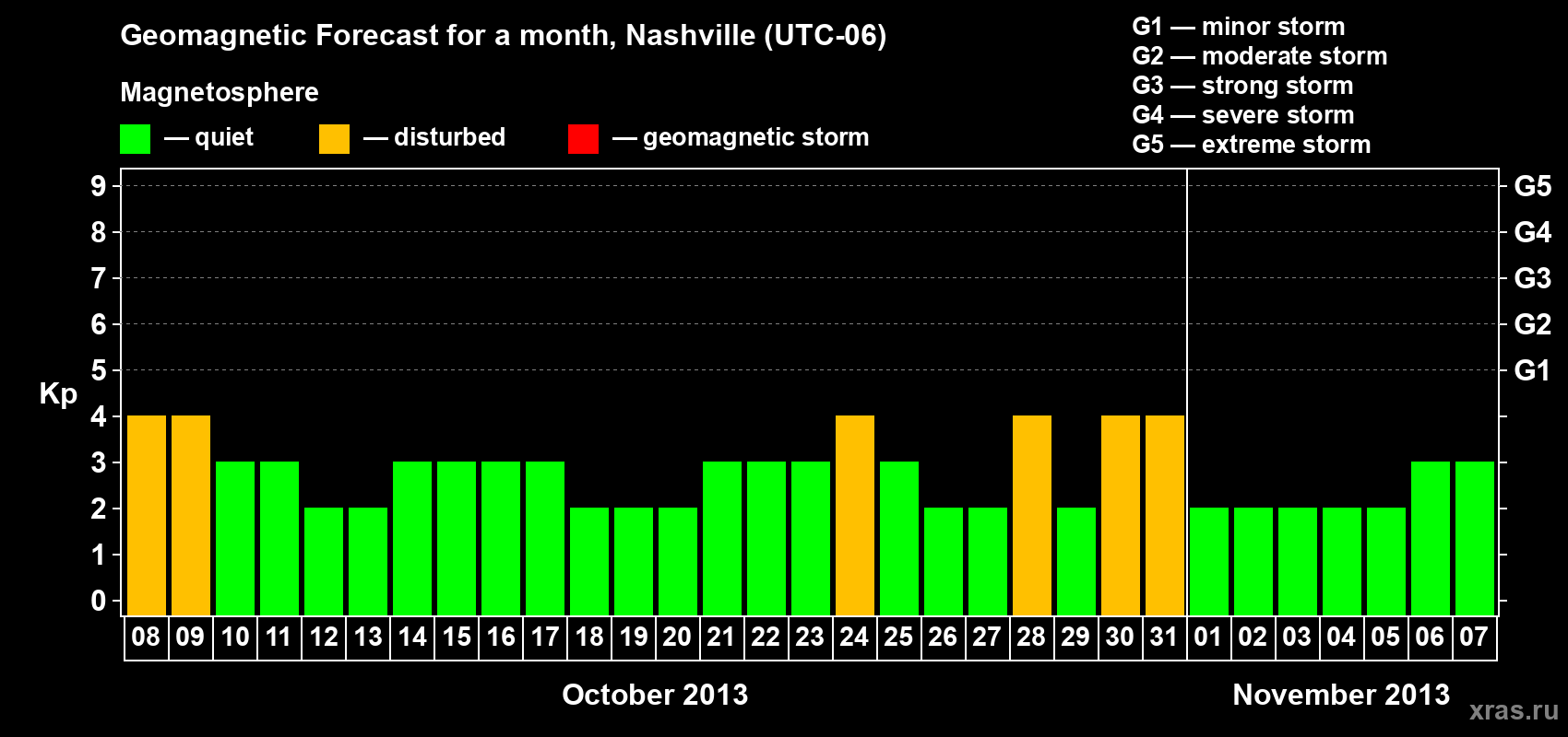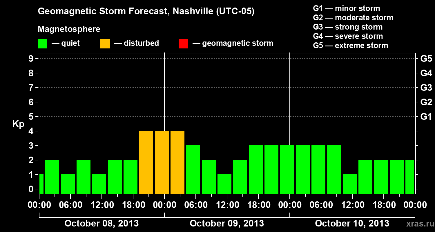 Geomagnetic storm forecast in Nashville for Oct 08, 2013
