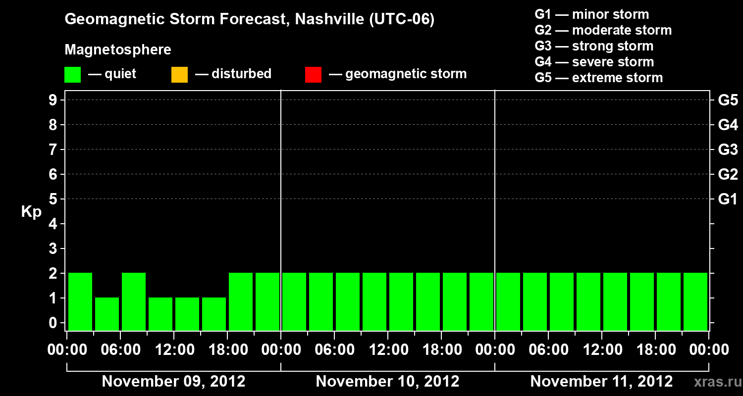 Geomagnetic storm forecast in Nashville for Nov 09, 2012