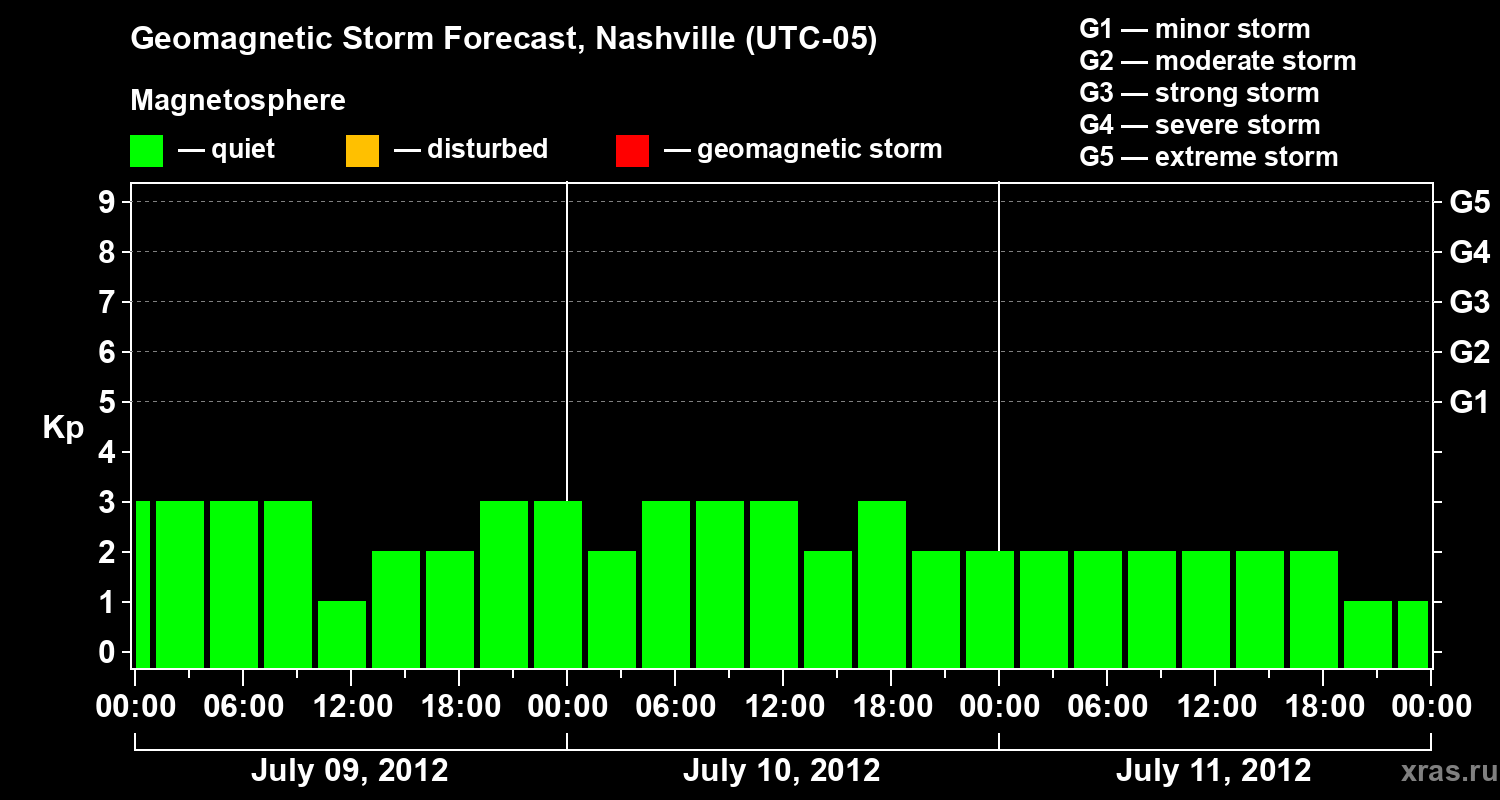 Geomagnetic storm forecast in Nashville for Jul 09, 2012