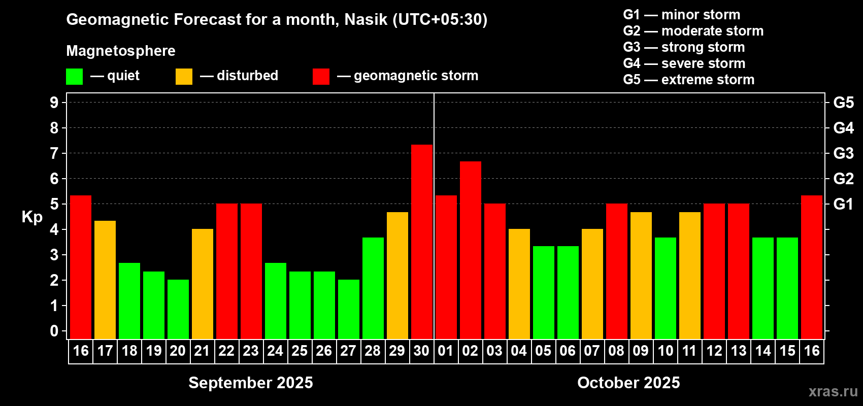 Geomagnetic storm forecast in Nasik for Sep 16, 2025