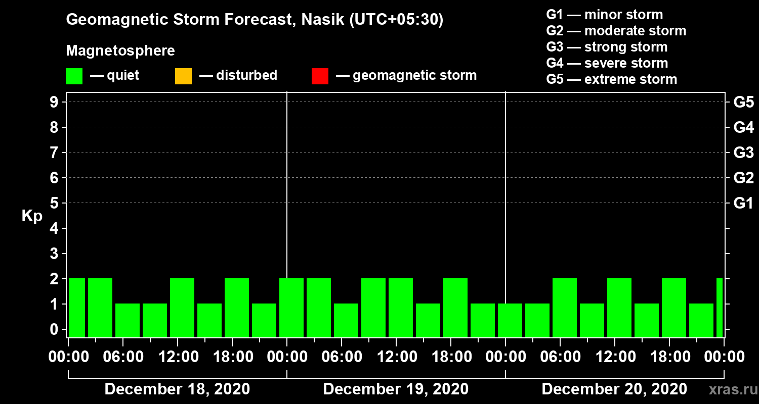 Geomagnetic storm forecast in Nasik for Dec 18, 2020