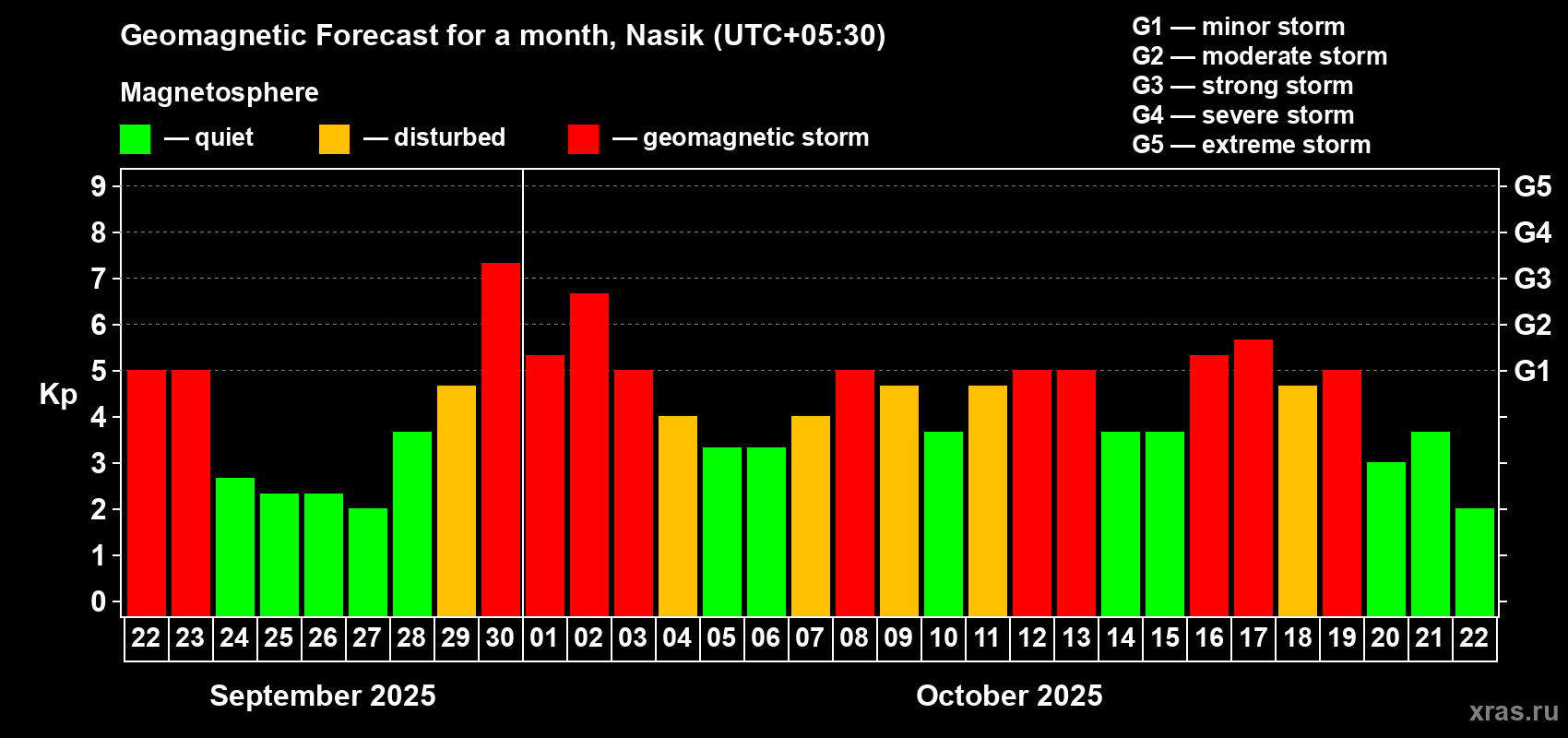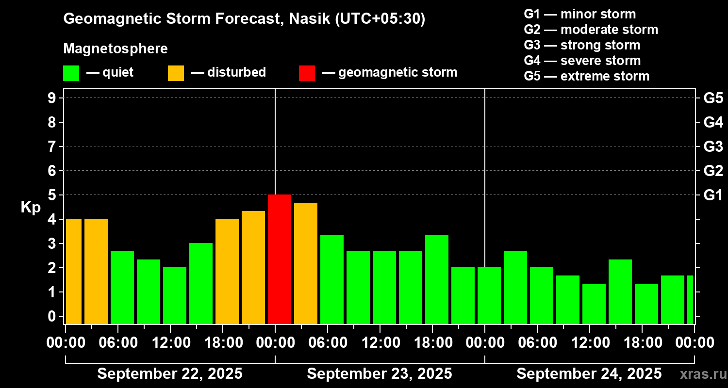 Geomagnetic storm forecast in Nasik for Sep 22, 2025