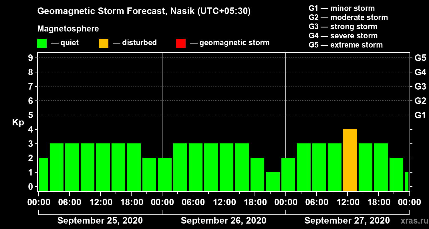 Geomagnetic storm forecast in Nasik for Sep 25, 2020