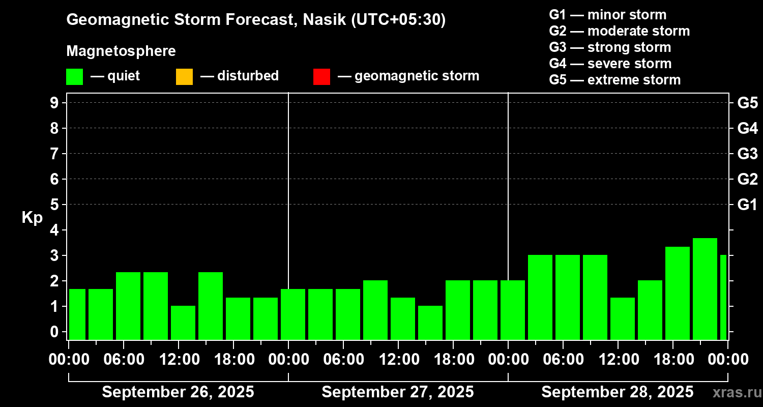 Geomagnetic storm forecast in Nasik for Sep 26, 2025