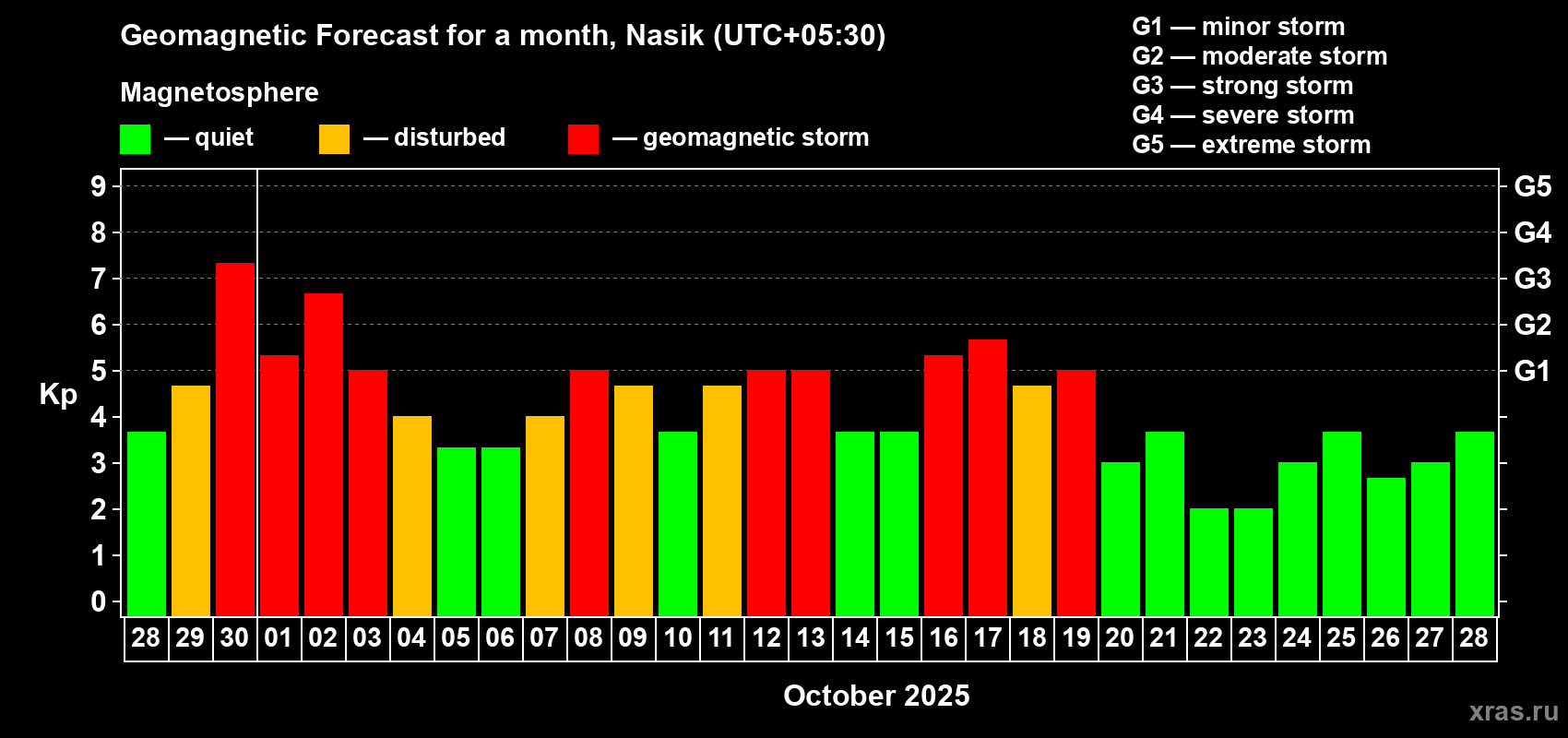 Geomagnetic storm forecast in Nasik for Sep 28, 2025