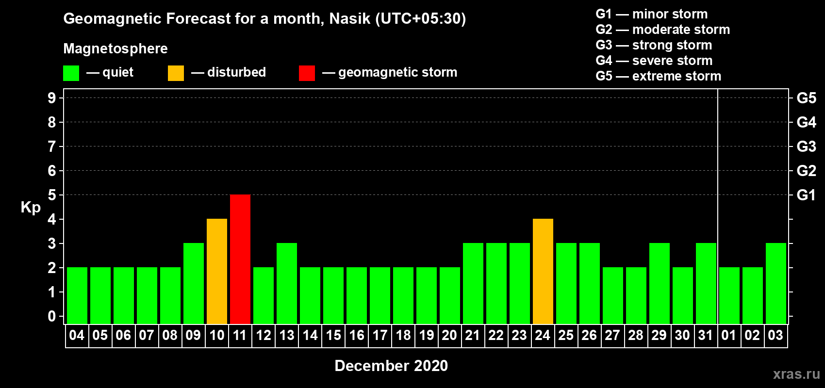 Geomagnetic activity forecast in Nasik — Dec 04, 2020