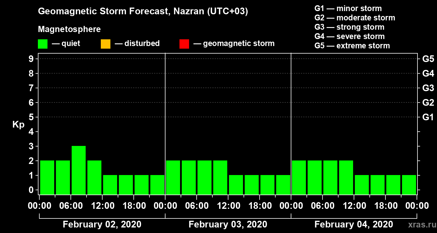 Geomagnetic storm forecast in Nazran for Feb 02, 2020