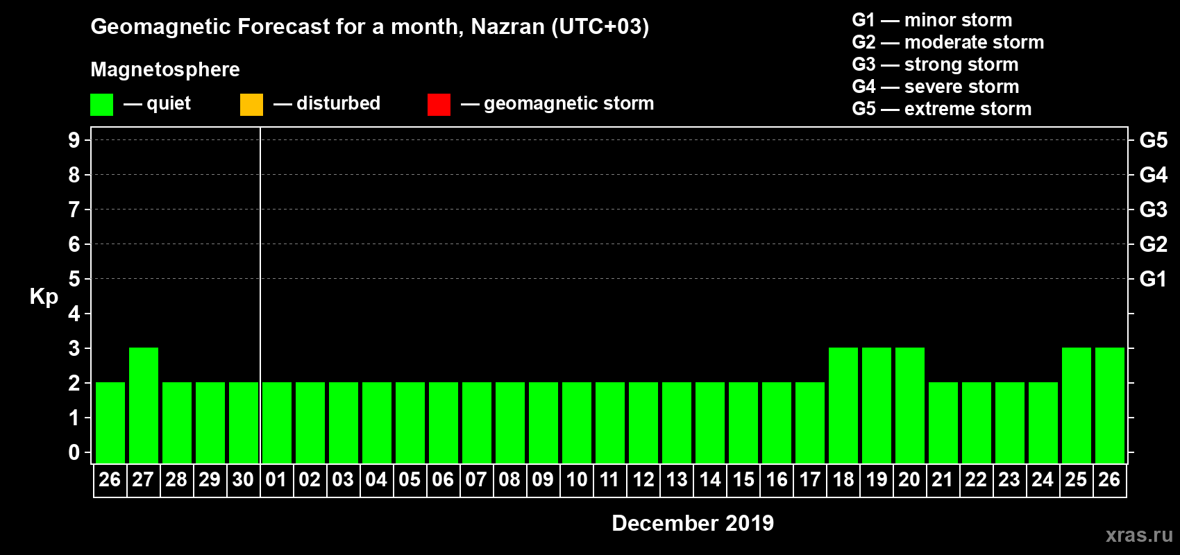 Geomagnetic activity forecast in Nazran — Nov 26, 2019