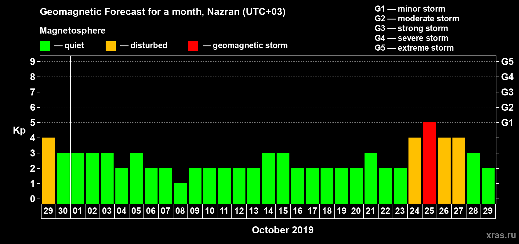 Geomagnetic activity forecast in Nazran — Sep 29, 2019