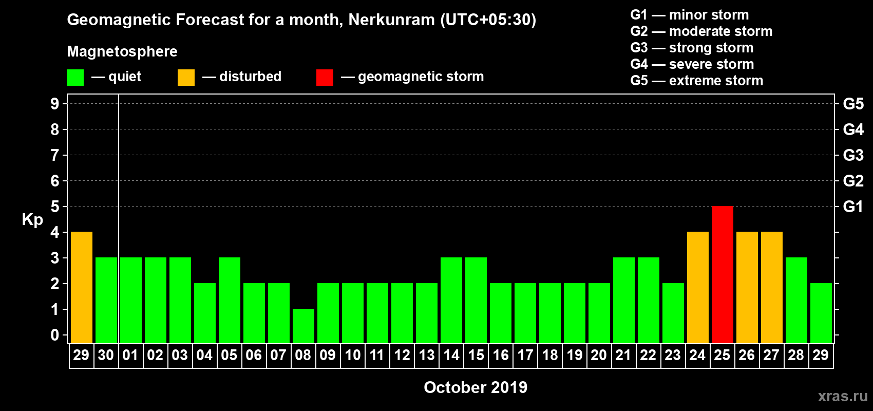 Geomagnetic storm forecast in Nerkunram for Sep 29, 2019