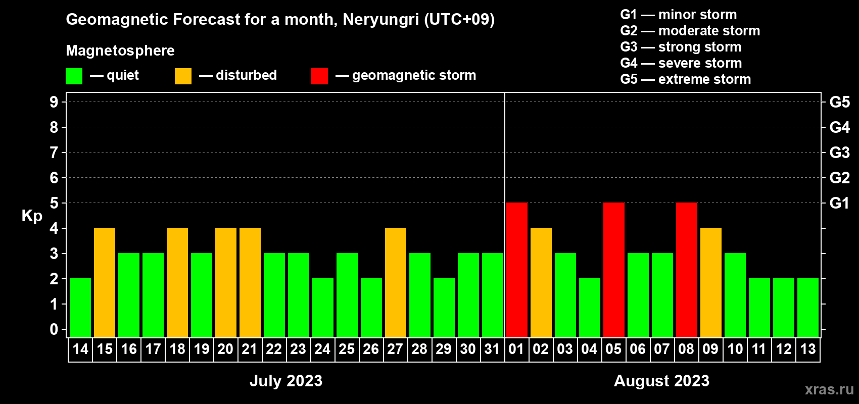 Geomagnetic storm forecast in Neryungri for Jul 14, 2023