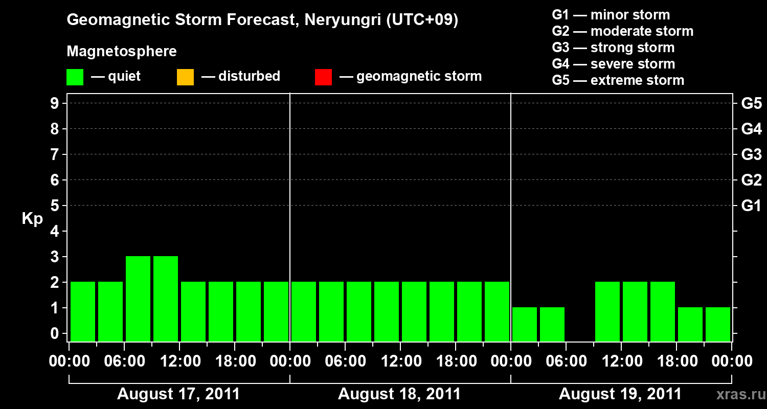 Geomagnetic storm forecast in Neryungri for Aug 17, 2011