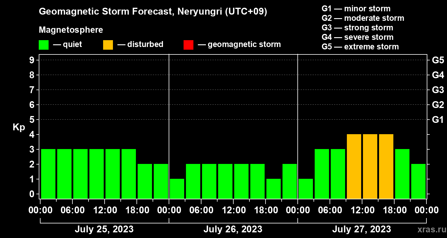 Geomagnetic storm forecast in Neryungri for Jul 25, 2023