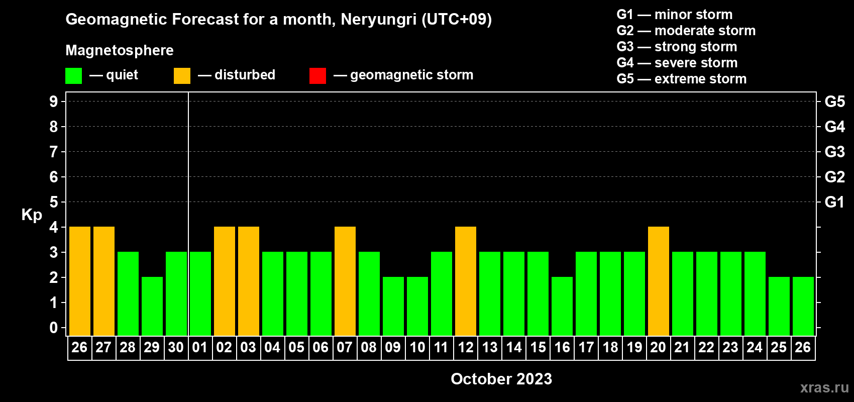 Geomagnetic activity forecast in Neryungri — Sep 26, 2023