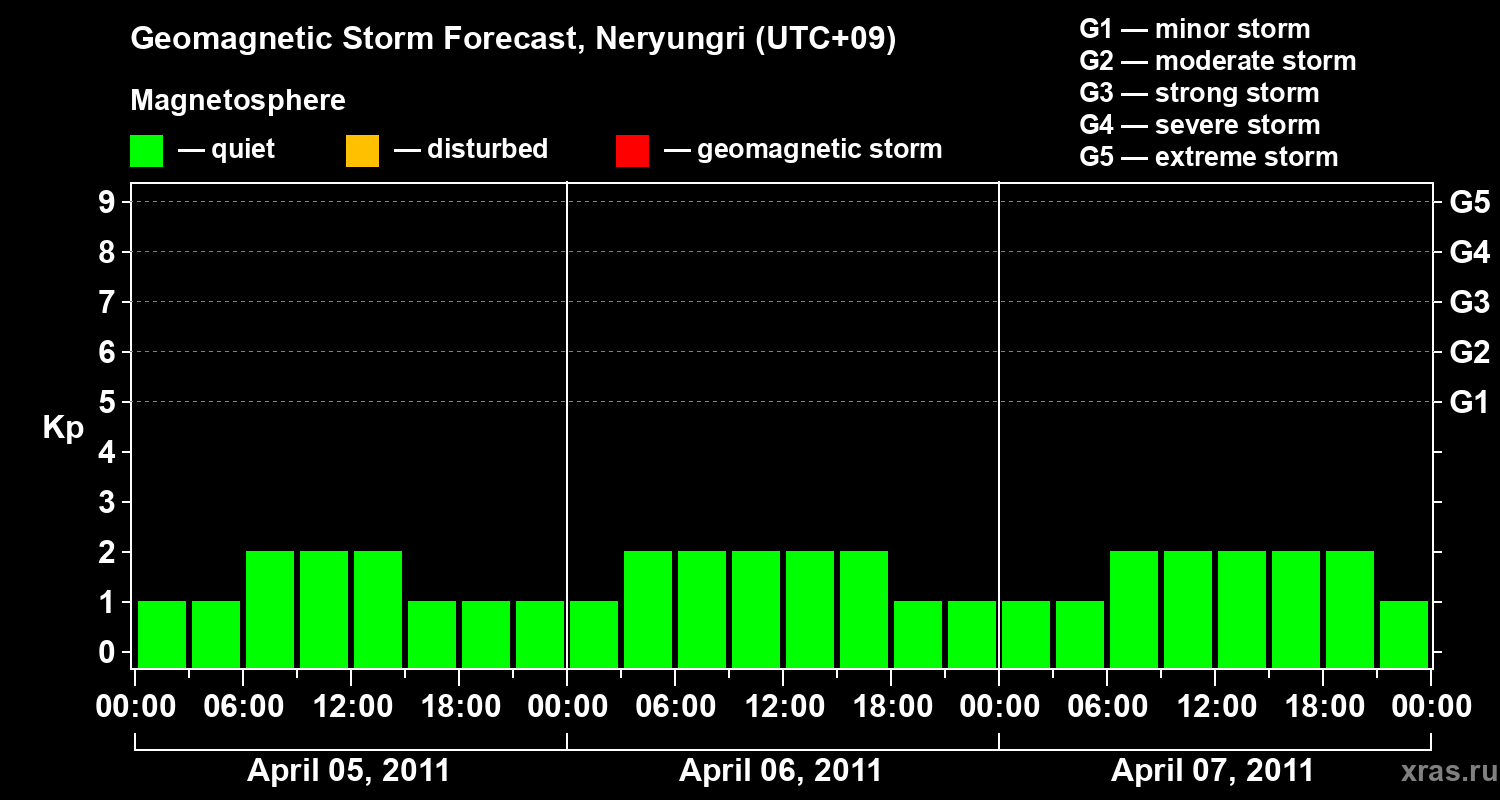 Geomagnetic storm forecast in Neryungri for Apr 05, 2011
