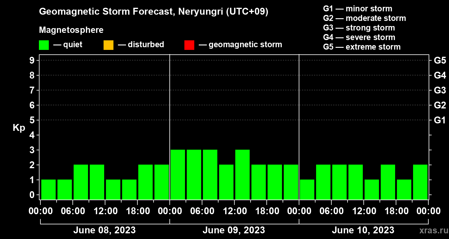 Geomagnetic storm forecast in Neryungri for Jun 08, 2023