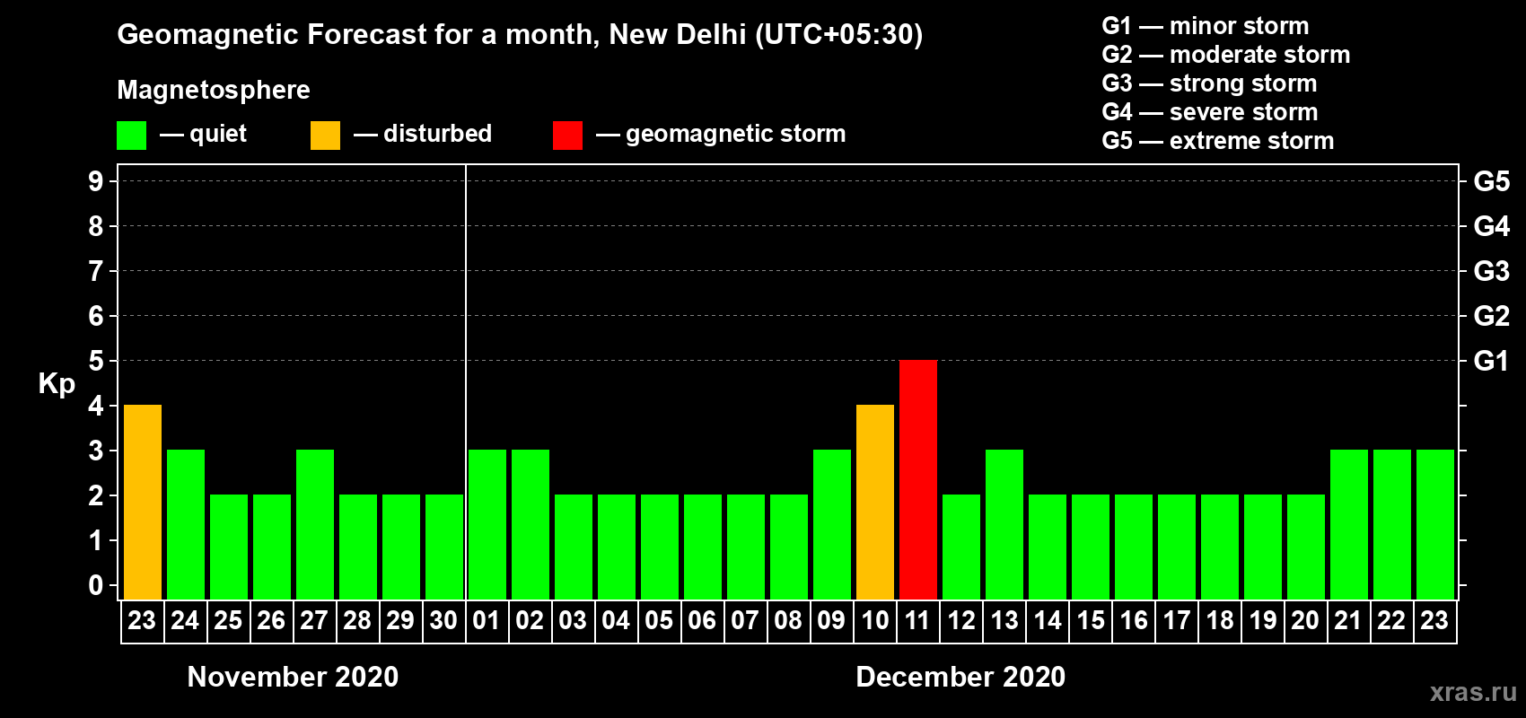 Geomagnetic activity forecast in New Delhi — Nov 23, 2020