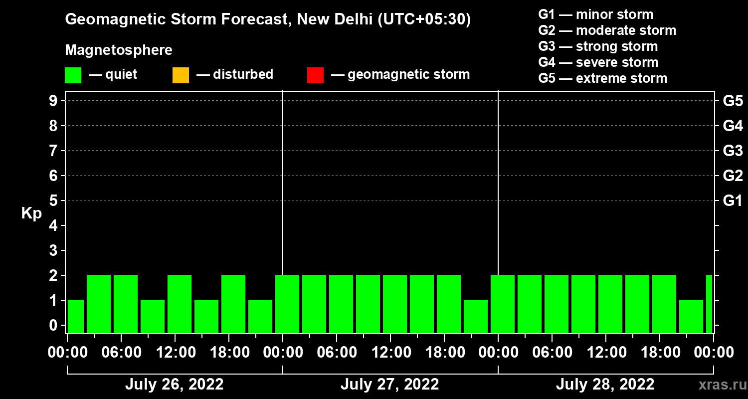 Geomagnetic activity forecast in New Delhi — Jul 26, 2022