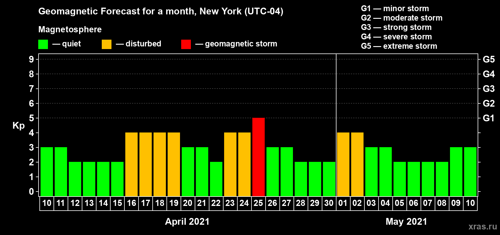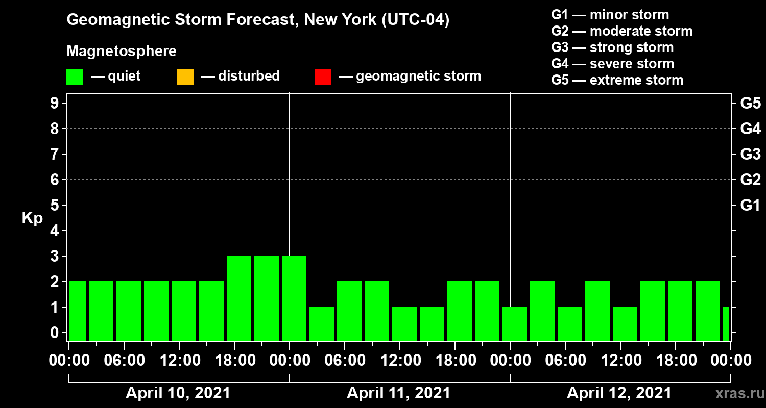 Geomagnetic storm forecast in New York for Apr 10, 2021