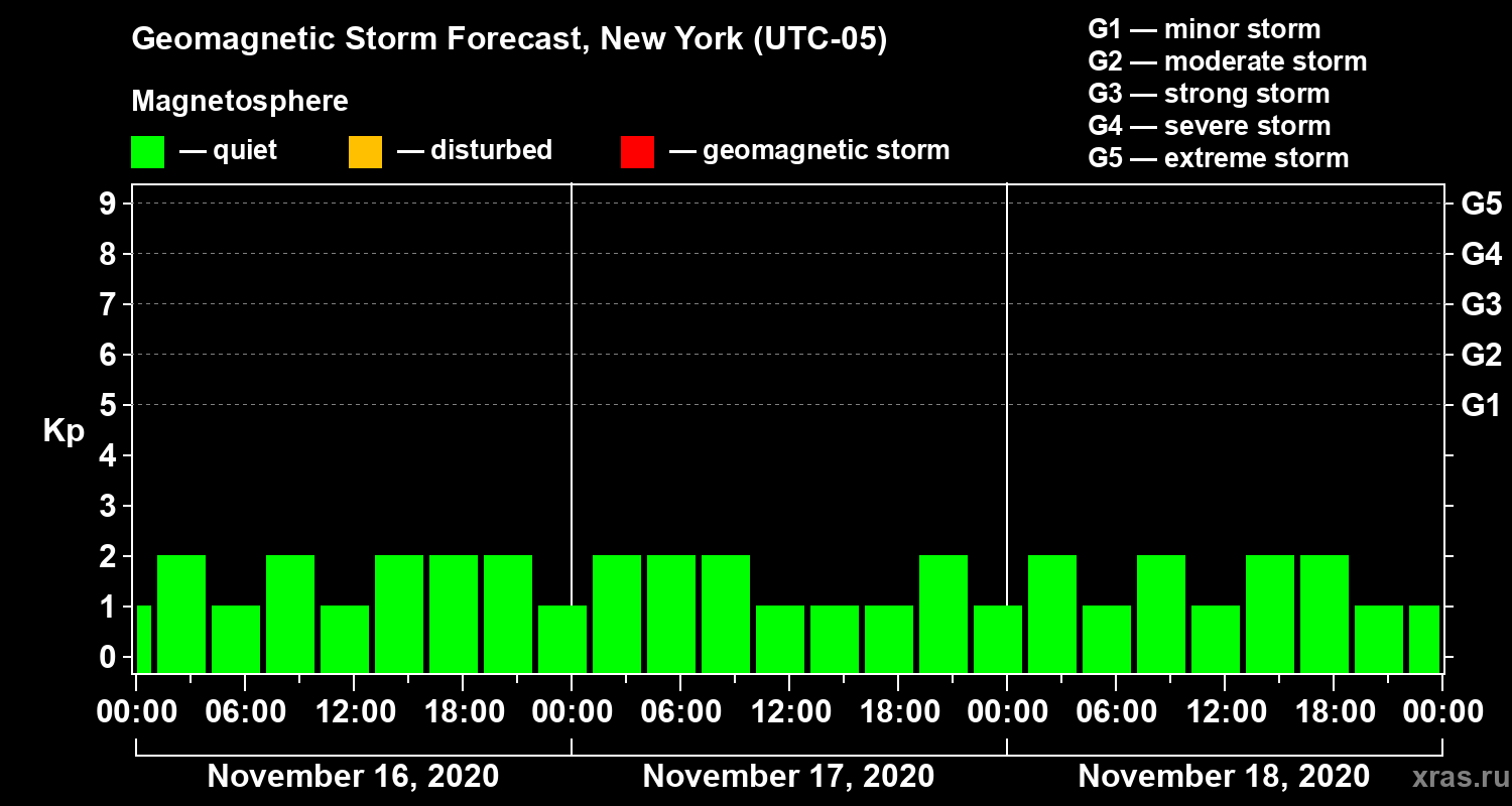 Geomagnetic storm forecast in New York for Nov 16, 2020
