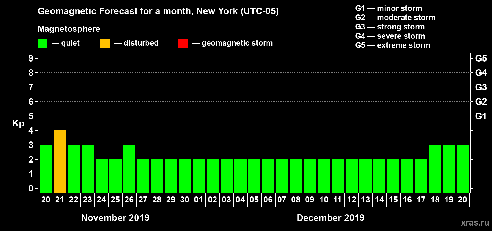Geomagnetic storm forecast in New York for Nov 20, 2019