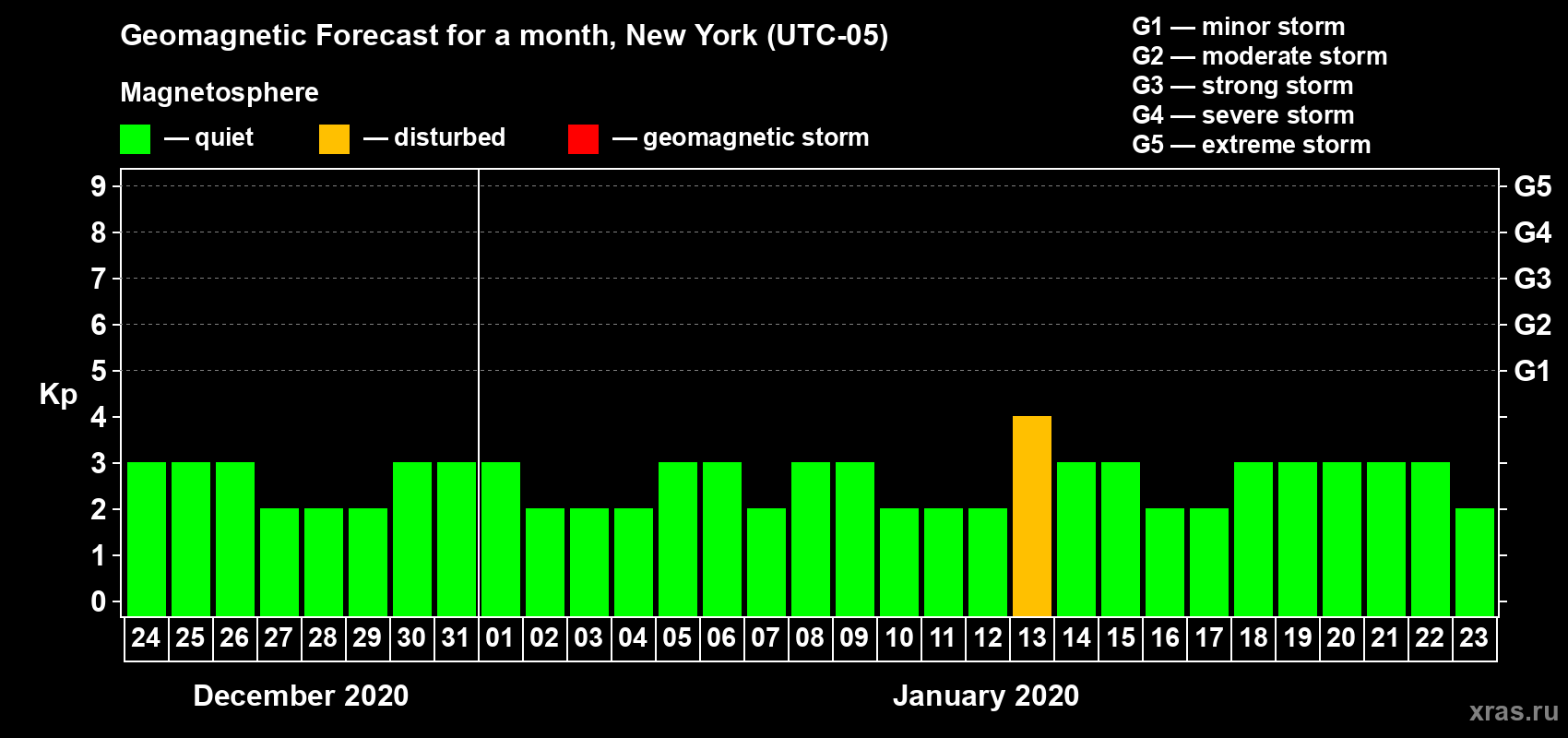 Geomagnetic storm forecast in New York for Dec 24, 2019
