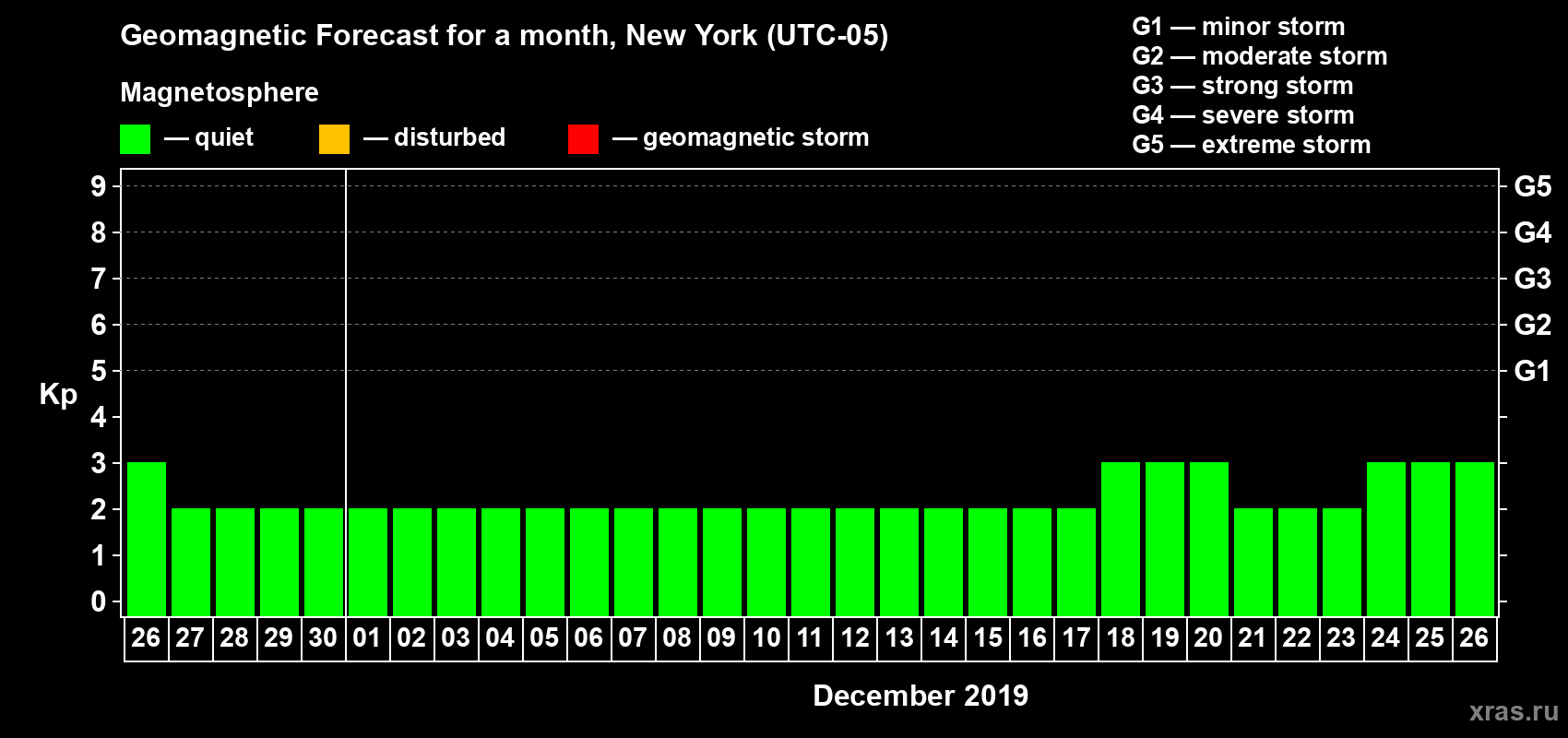 Geomagnetic storm forecast in New York for Nov 26, 2019