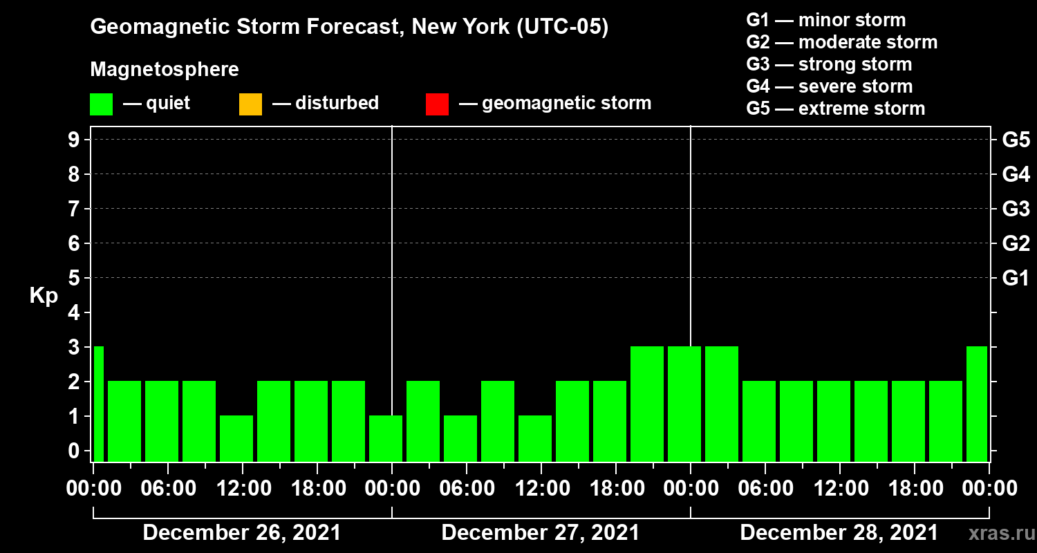 Geomagnetic activity forecast in New York — Dec 26, 2021