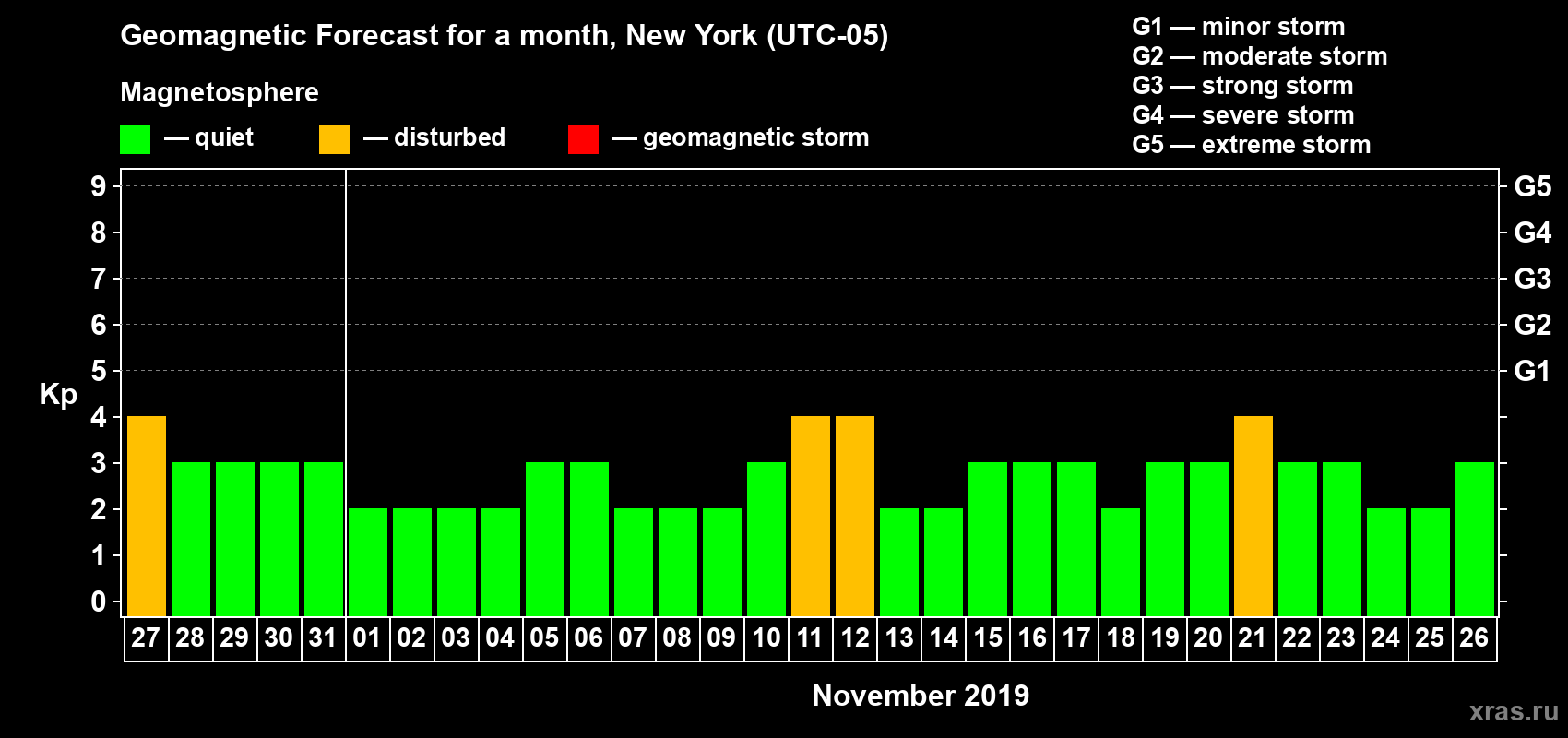Geomagnetic storm forecast in New York for Oct 27, 2019