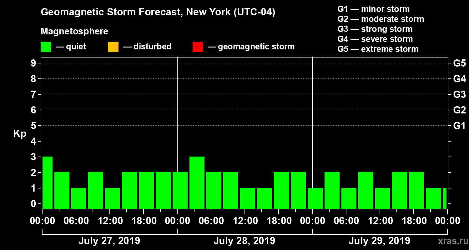 Geomagnetic storm forecast in New York for Jul 27, 2019