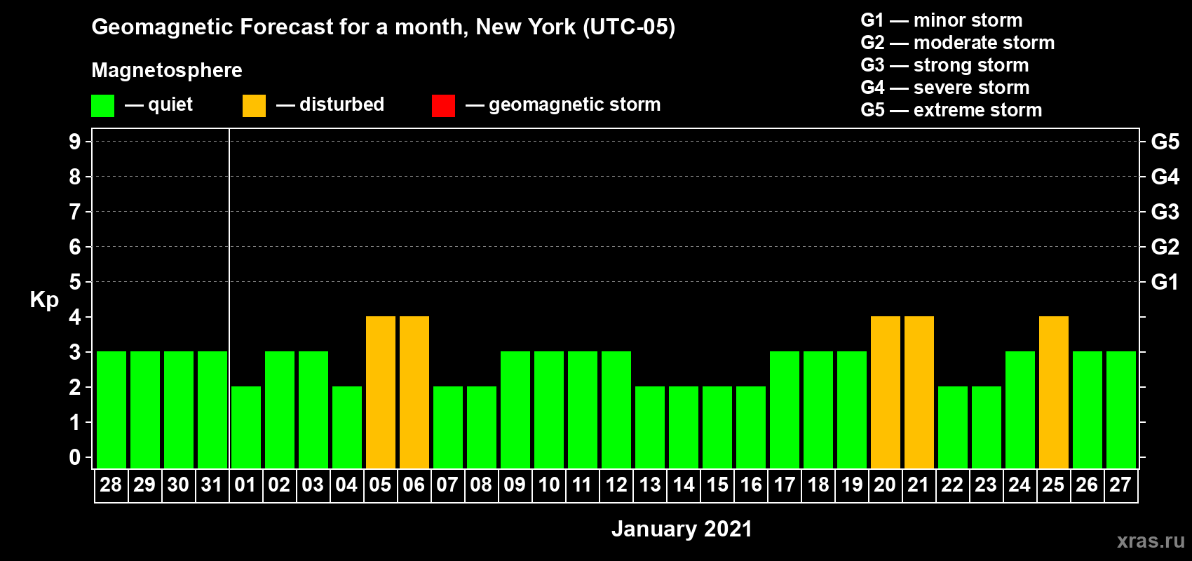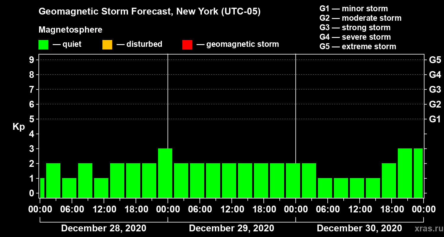 Geomagnetic storm forecast in New York for Dec 28, 2020