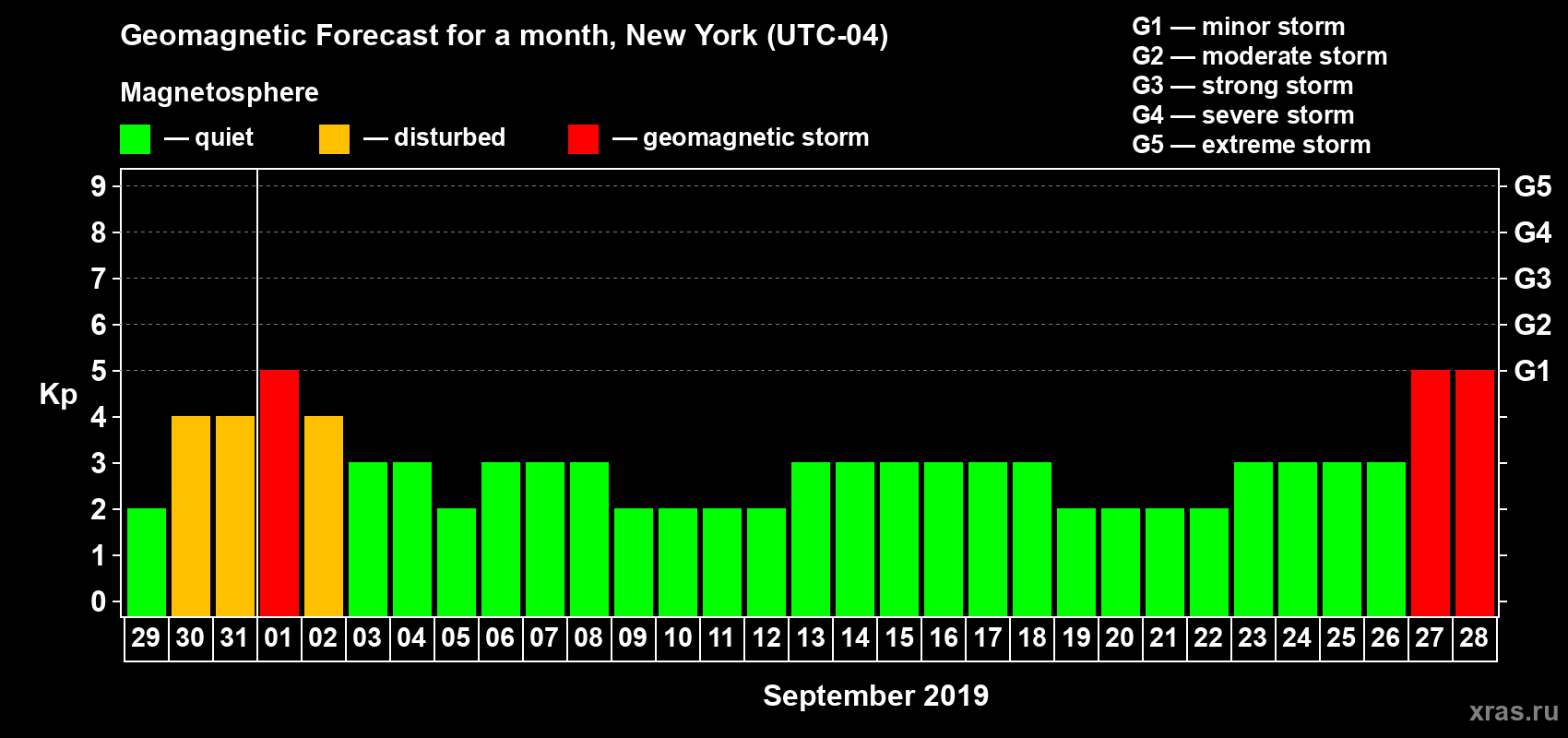 Geomagnetic storm forecast in New York for Aug 29, 2019