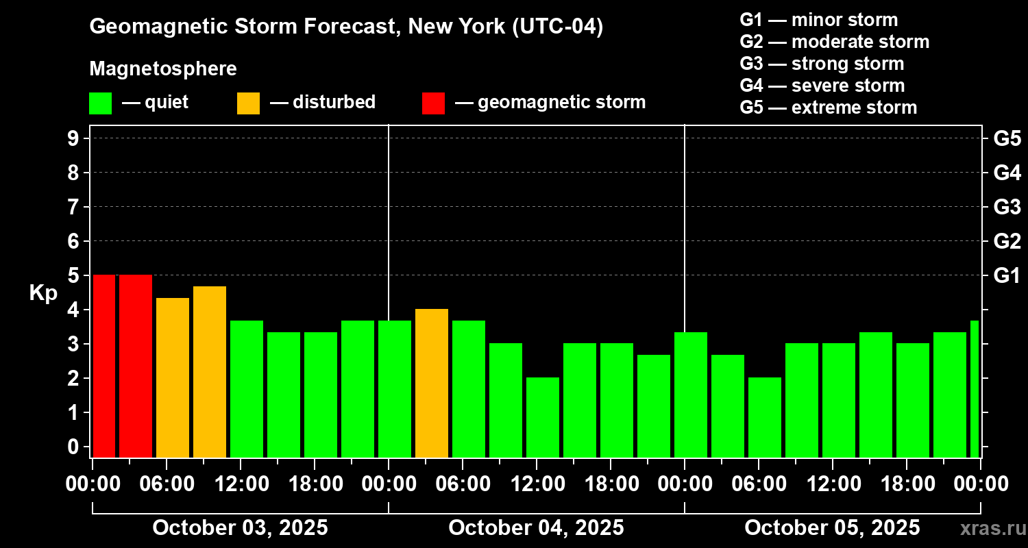 Geomagnetic storm forecast in New York for Oct 03, 2025