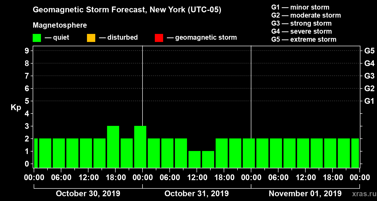Geomagnetic storm forecast in New York for Oct 30, 2019