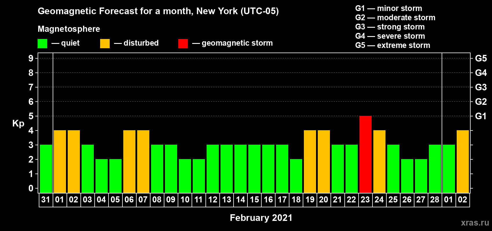 Geomagnetic storm forecast in New York for Jan 31, 2021
