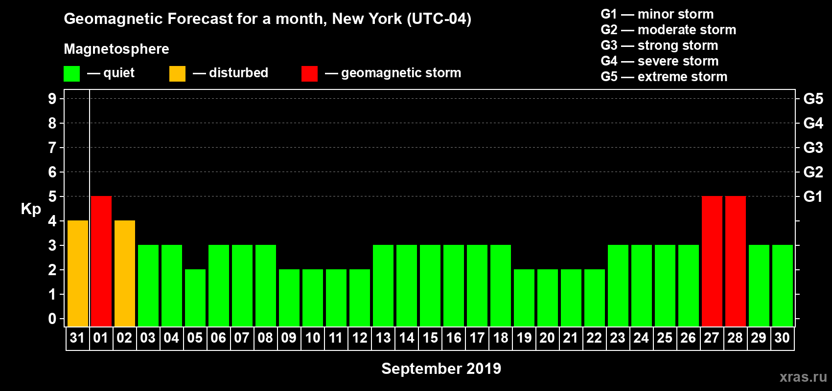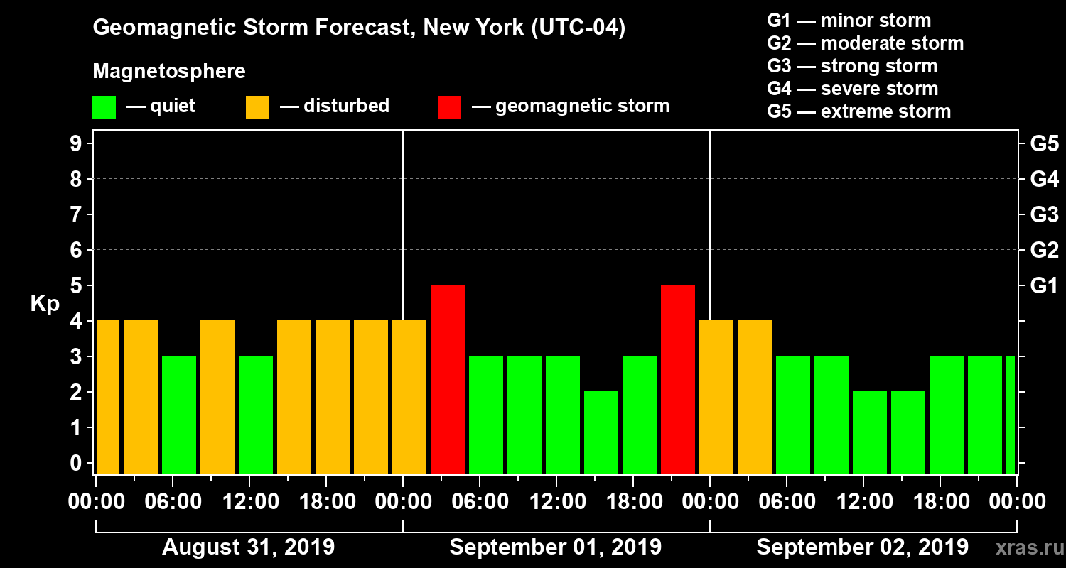 Geomagnetic storm forecast in New York for Aug 31, 2019