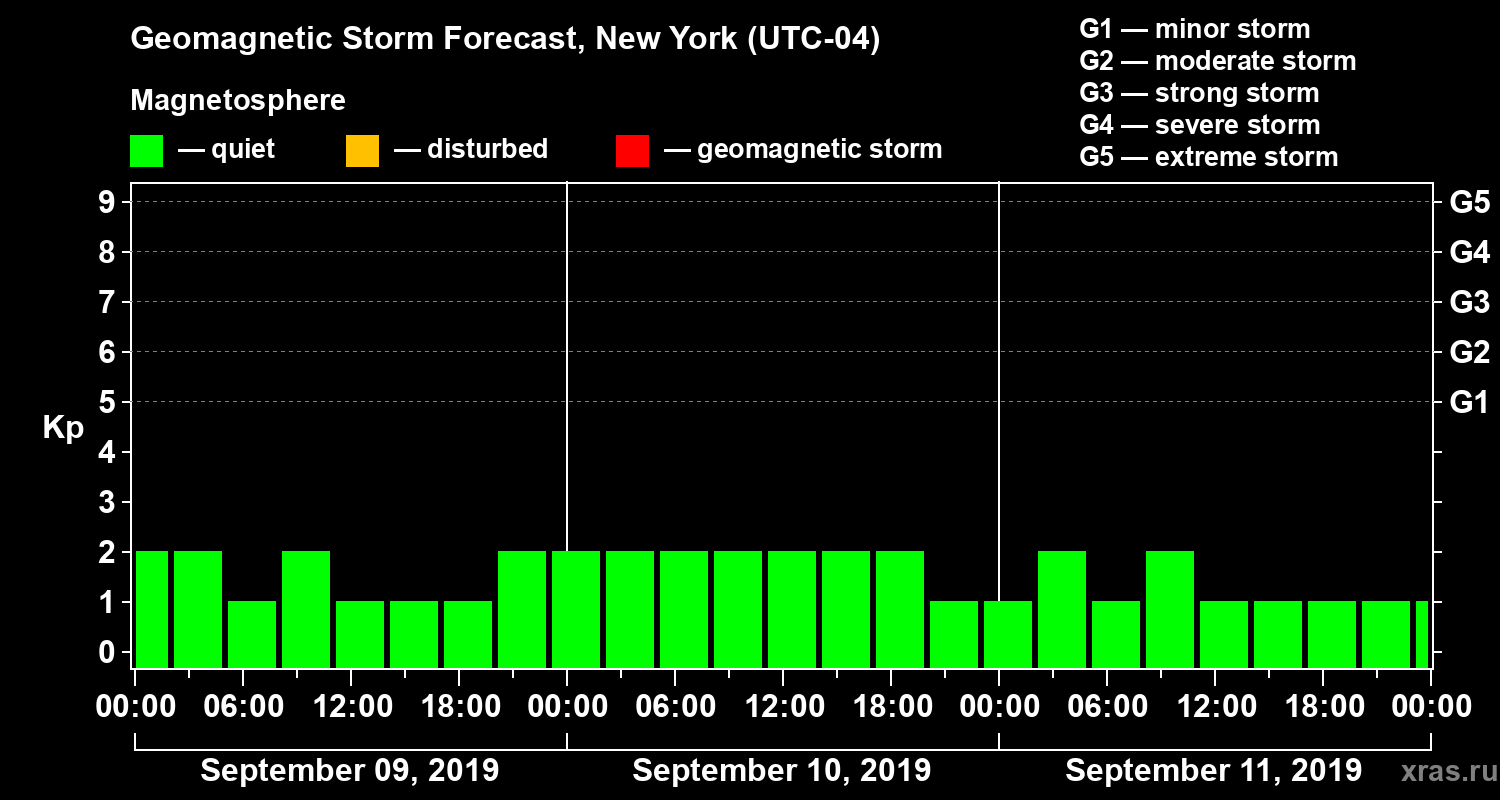Geomagnetic storm forecast in New York for Sep 09, 2019