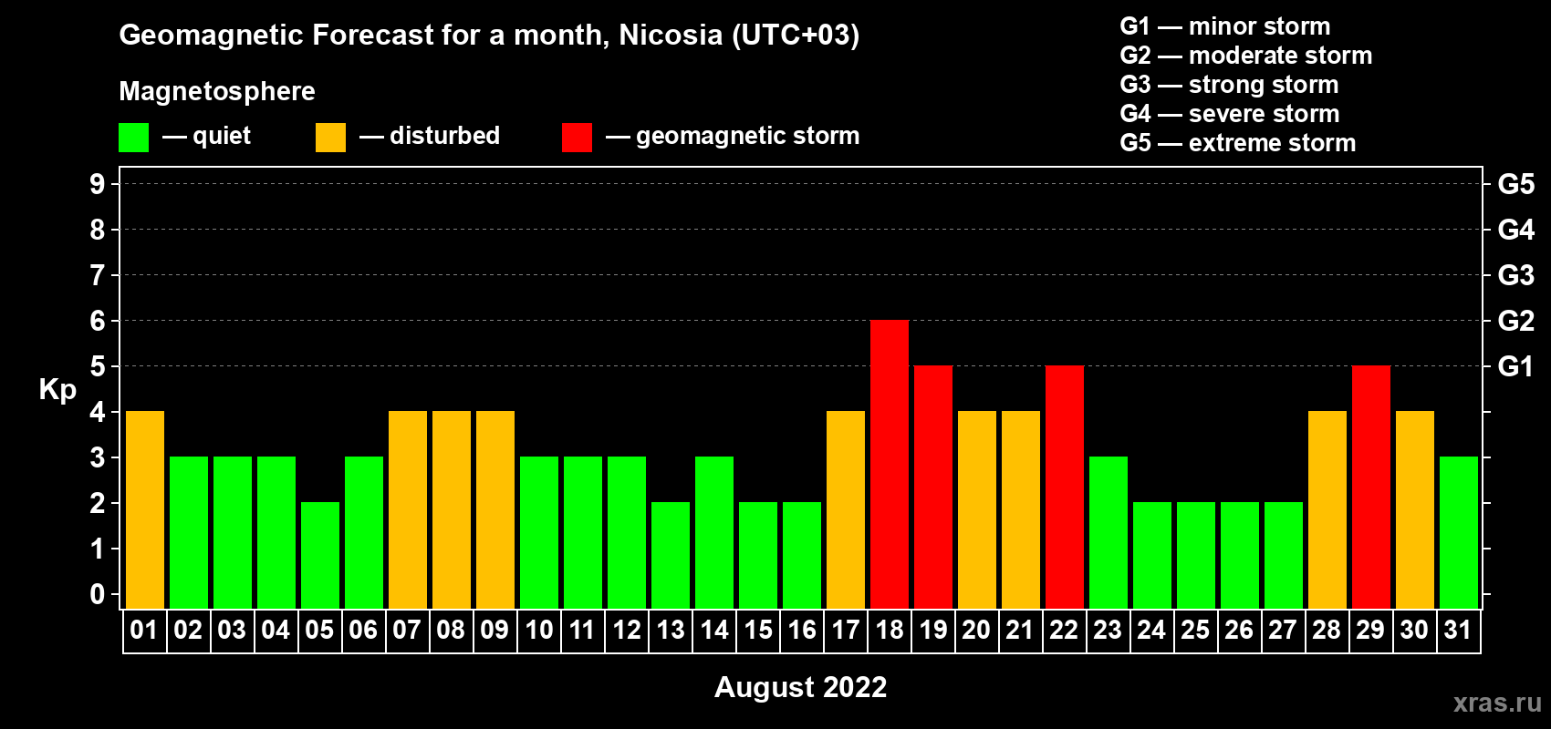 Geomagnetic storm forecast in Nicosia for Aug 01, 2022