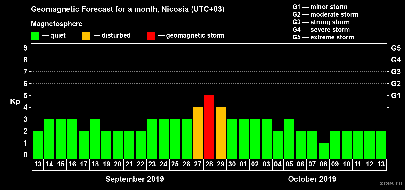 Geomagnetic storm forecast in Nicosia for Sep 13, 2019