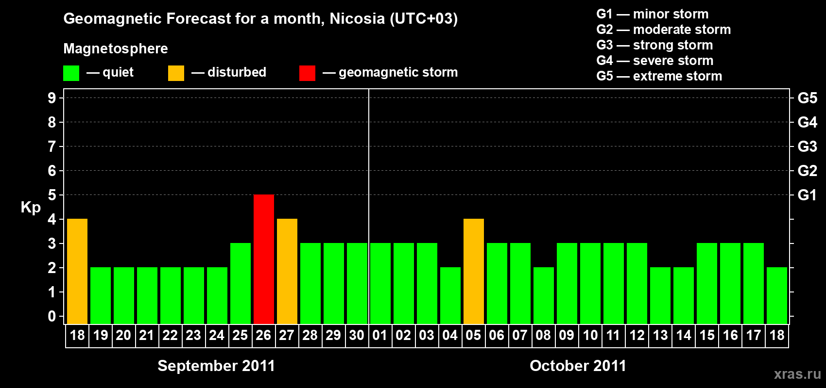 Geomagnetic storm forecast in Nicosia for Sep 18, 2011