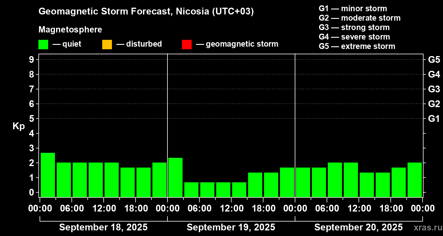 Geomagnetic storm forecast in Nicosia for Sep 18, 2025