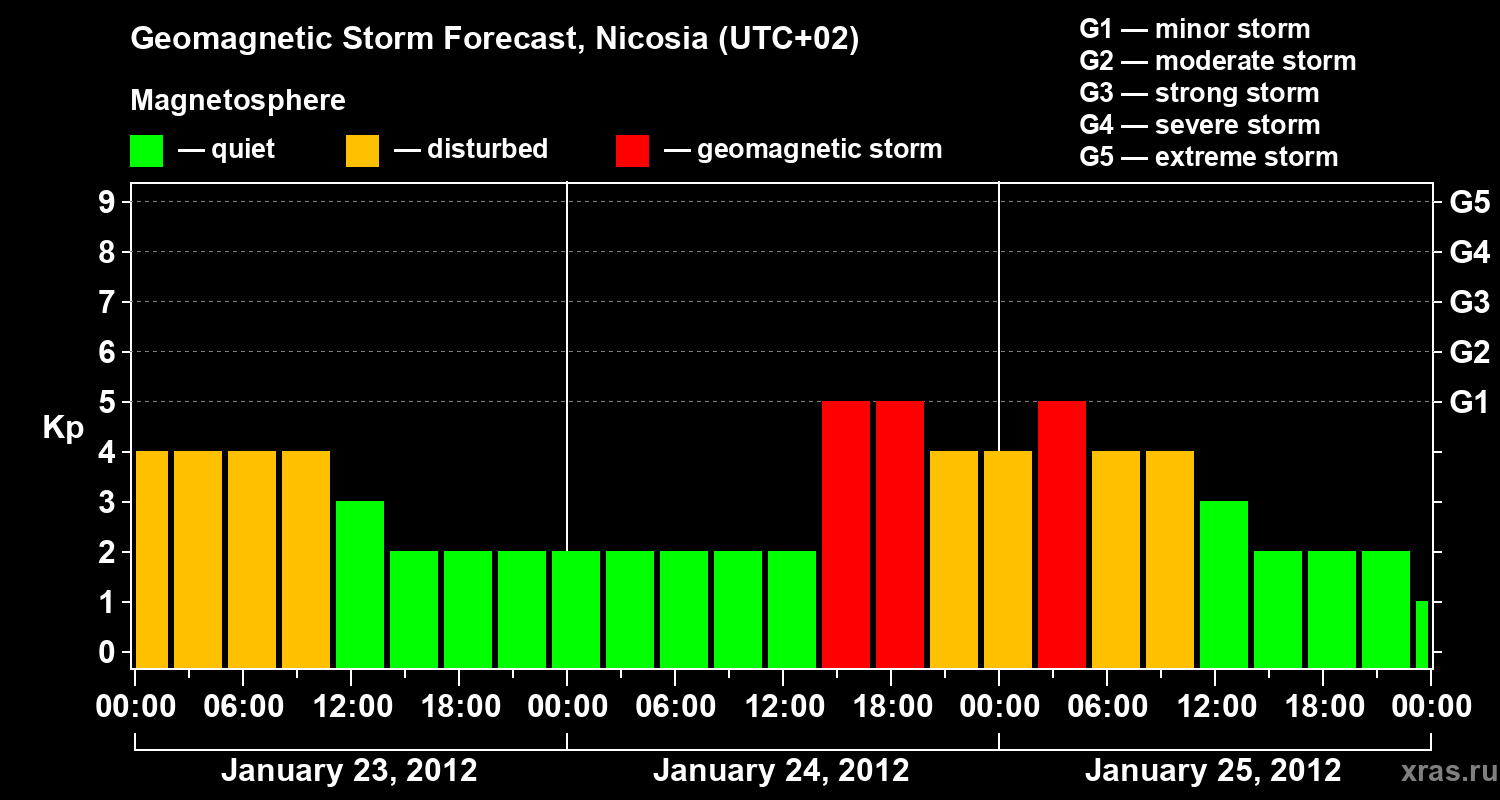 Geomagnetic storm forecast in Nicosia for Jan 23, 2012