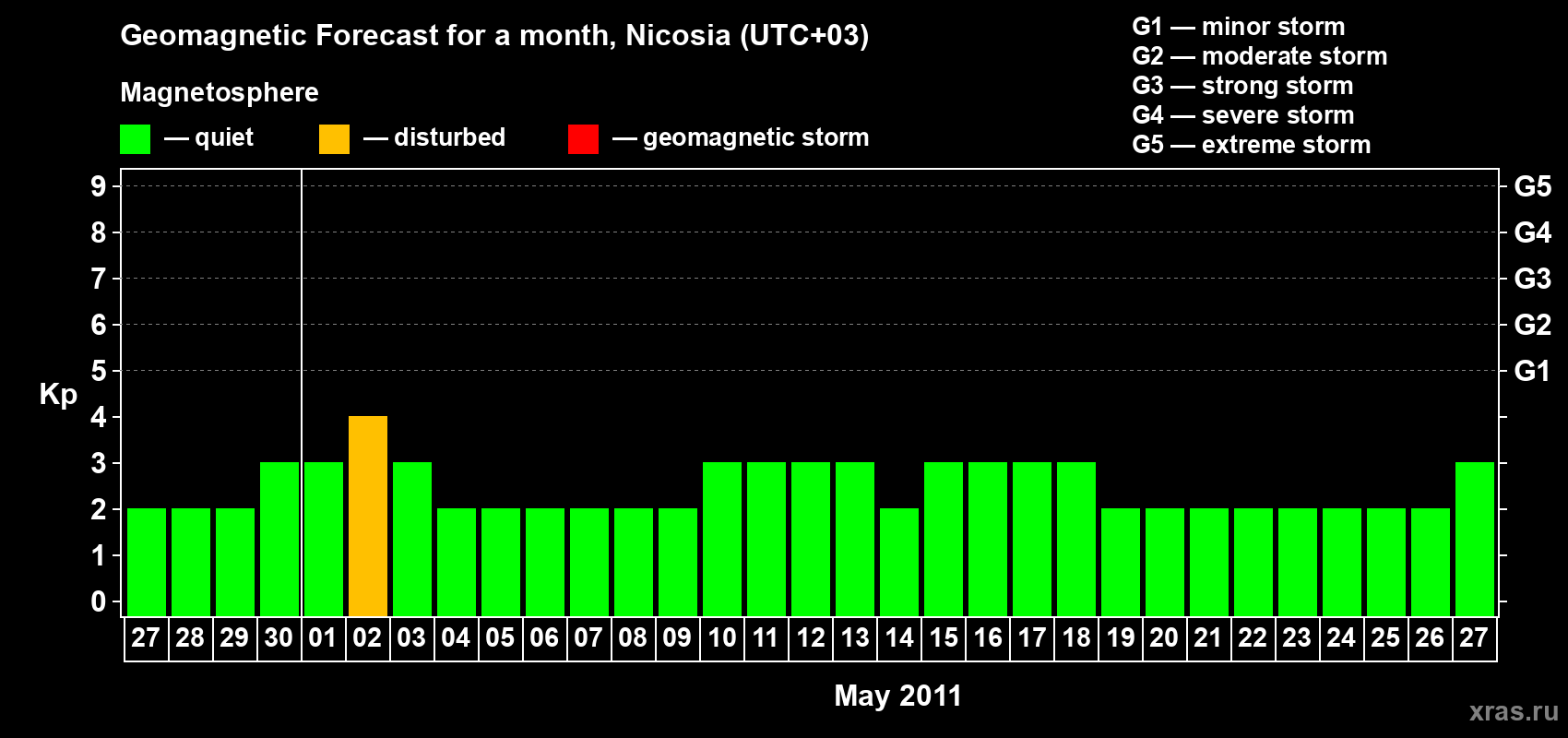 Geomagnetic storm forecast in Nicosia for Apr 27, 2011
