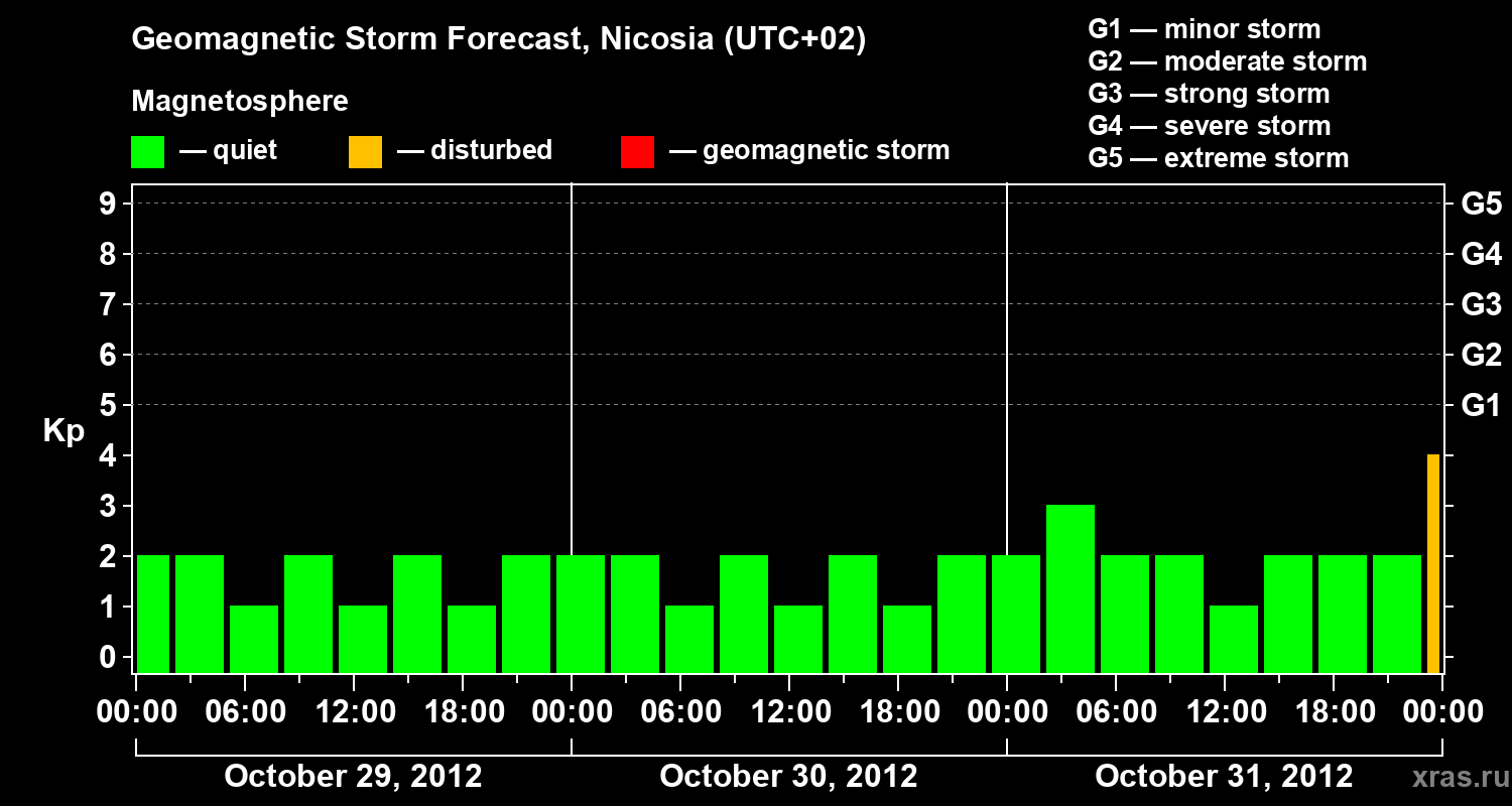 Geomagnetic storm forecast in Nicosia for Oct 29, 2012