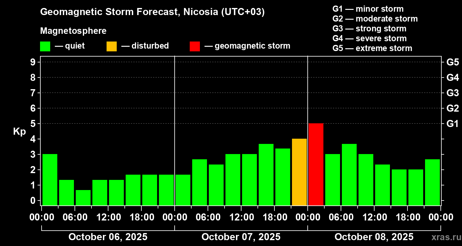 Geomagnetic storm forecast in Nicosia for Oct 06, 2025