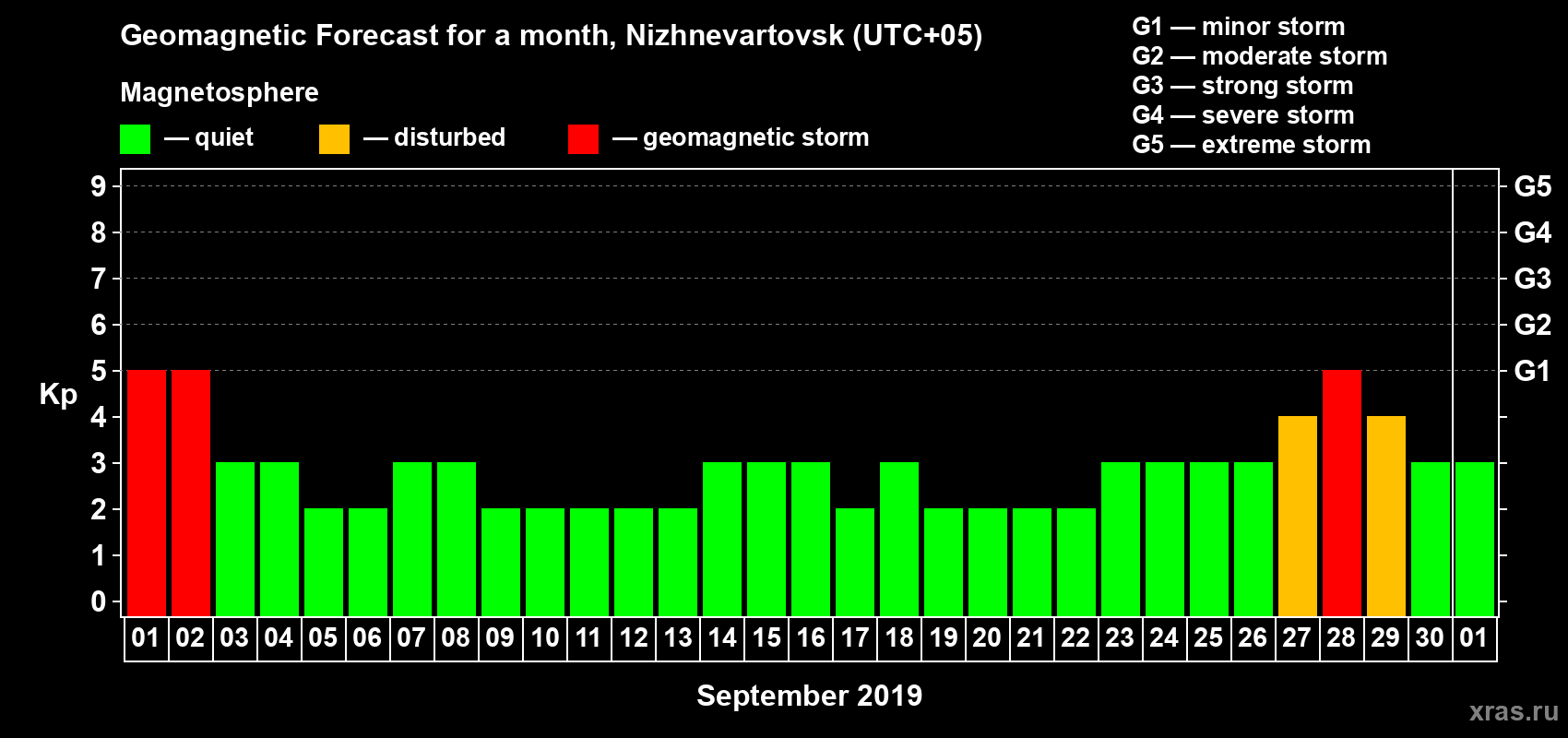 Geomagnetic storm forecast in Nizhnevartovsk for Sep 01, 2019