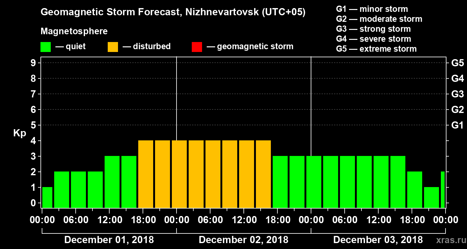 Geomagnetic storm forecast in Nizhnevartovsk for Dec 01, 2018