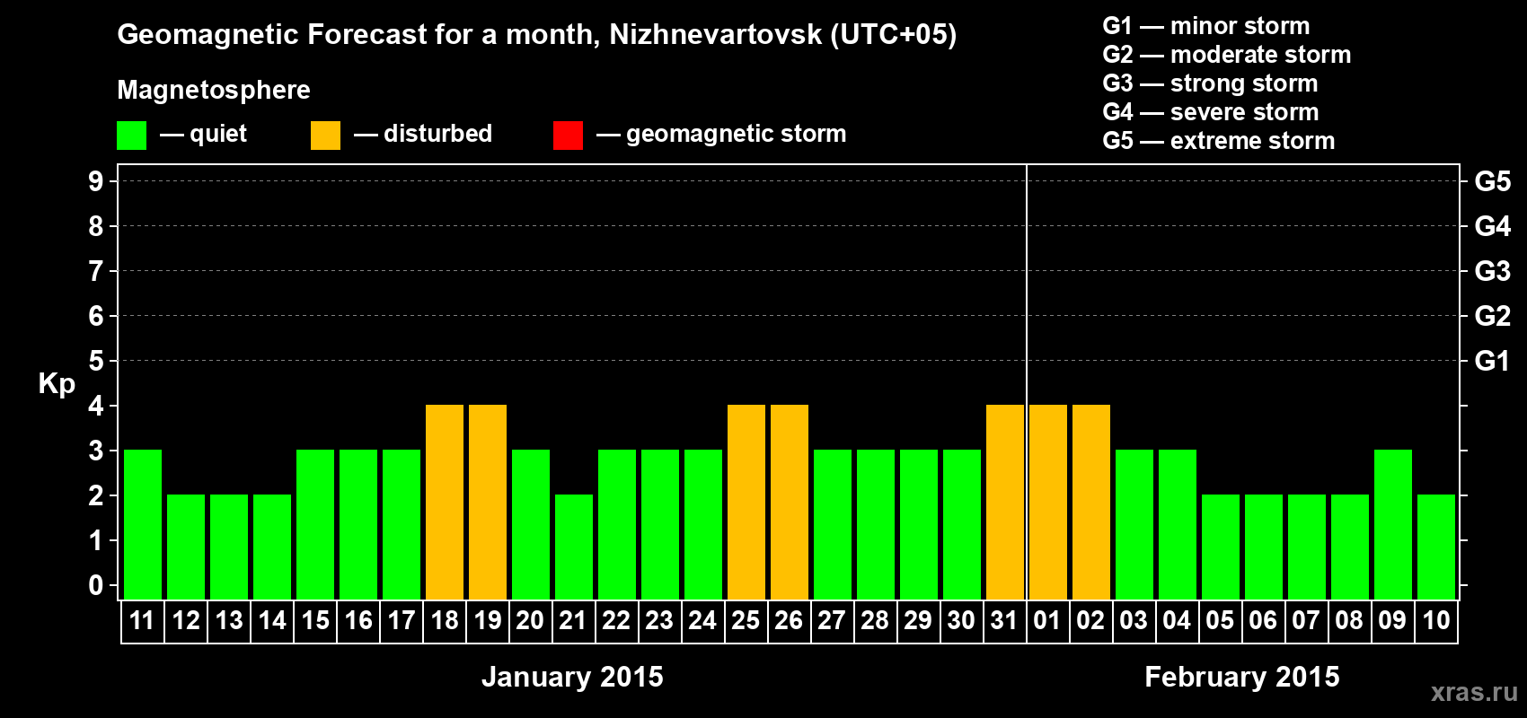 Geomagnetic activity forecast in Nizhnevartovsk — Jan 11, 2015